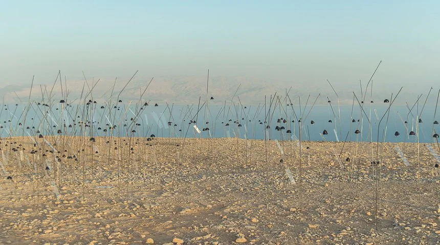 I found a familiar concept of sounds in Christian Boltanski's work Animitas (Spanish for 'little soul'). The work is an installation in a remote open field as a tribute to small roadside altars dedicated to the dead. The first work in the series was set in the Atacama Desert in Chile, where Boltanski used 300 wind chimes to recreate the starry sky he saw in the southern hemisphere. The series then moved to Teshima in Japan, the island of Orléans in Quebec and along the shores of the Dead Sea in Israel, in various forms, in order to unite Boltanski's personal history with the stories of each location.